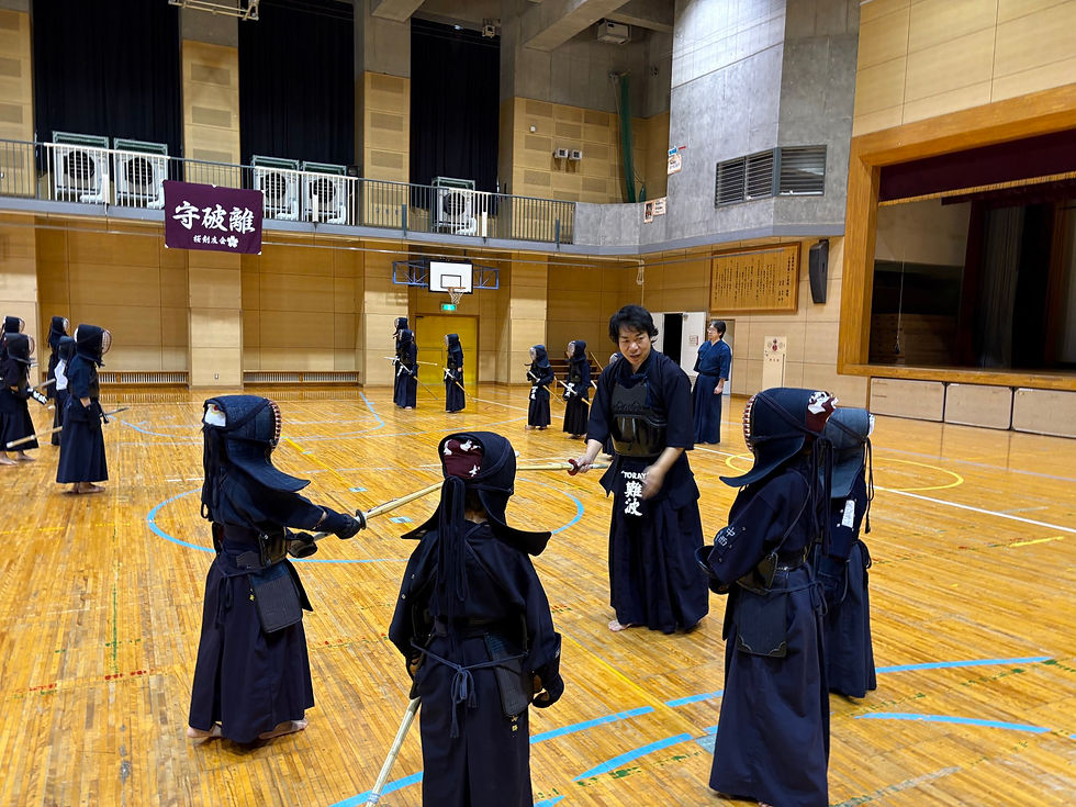 昇級試験に合格したばかりの、防具をつけたての子達は、難波先生のもとで相手と打ち合うことの練習を!